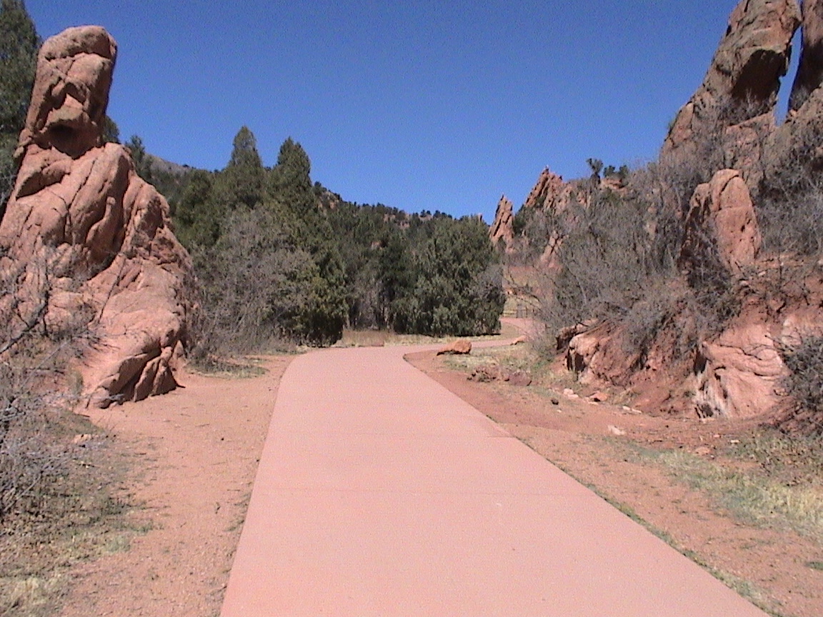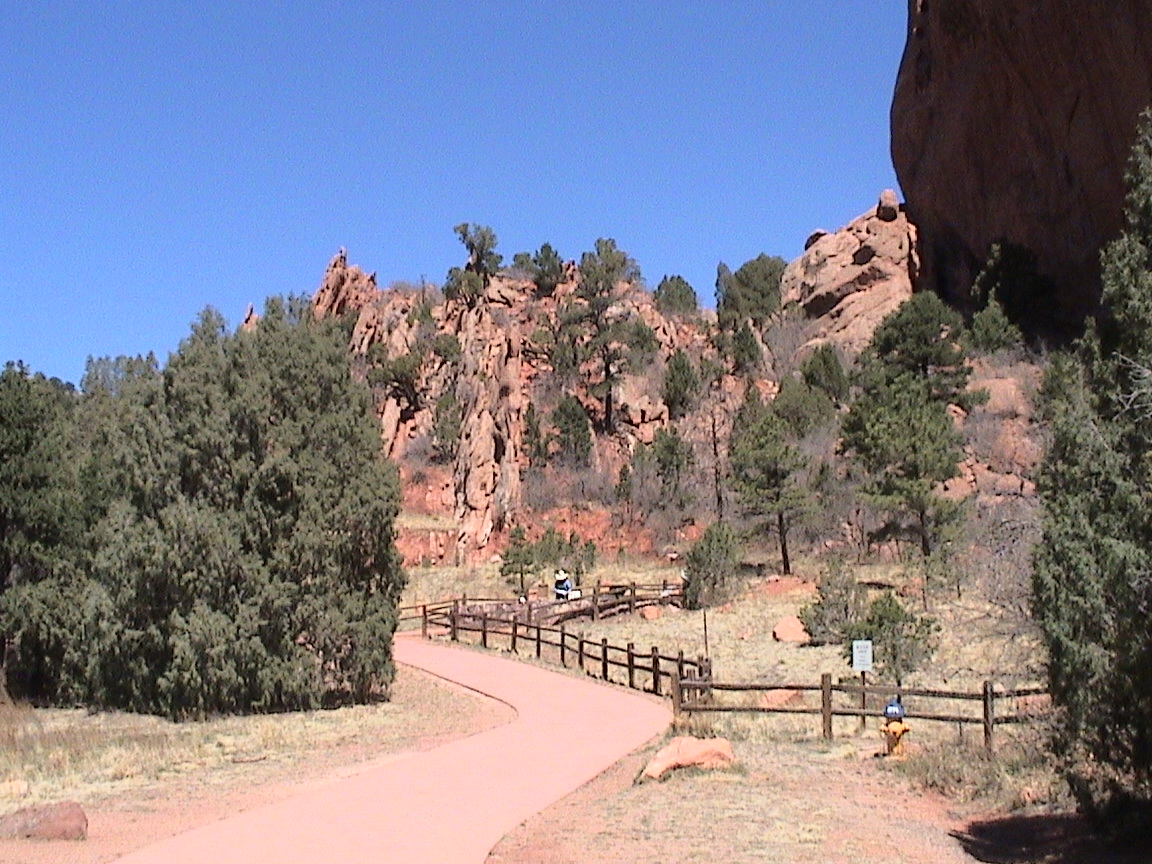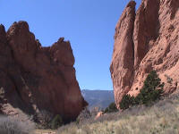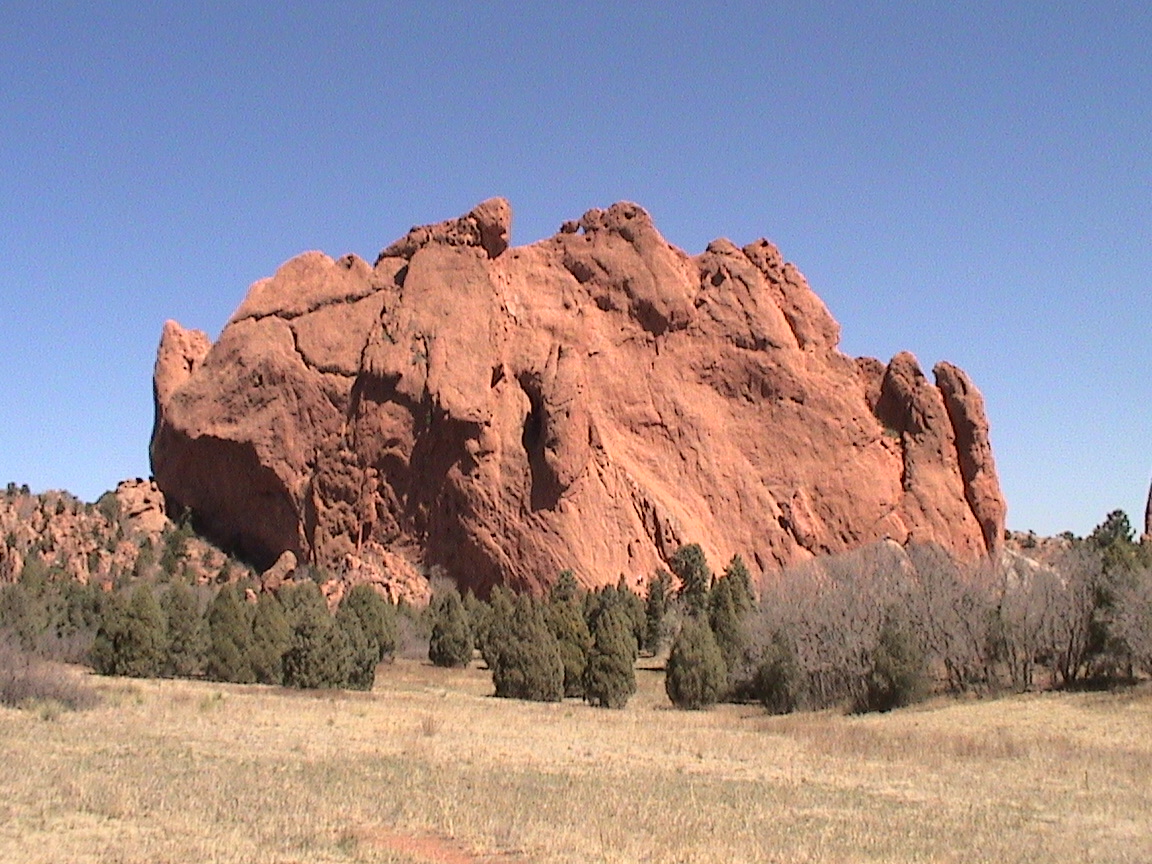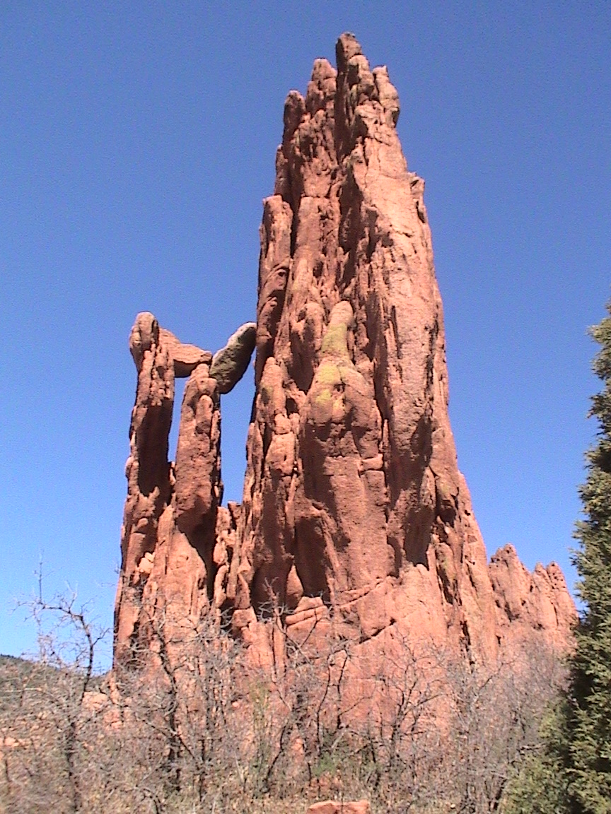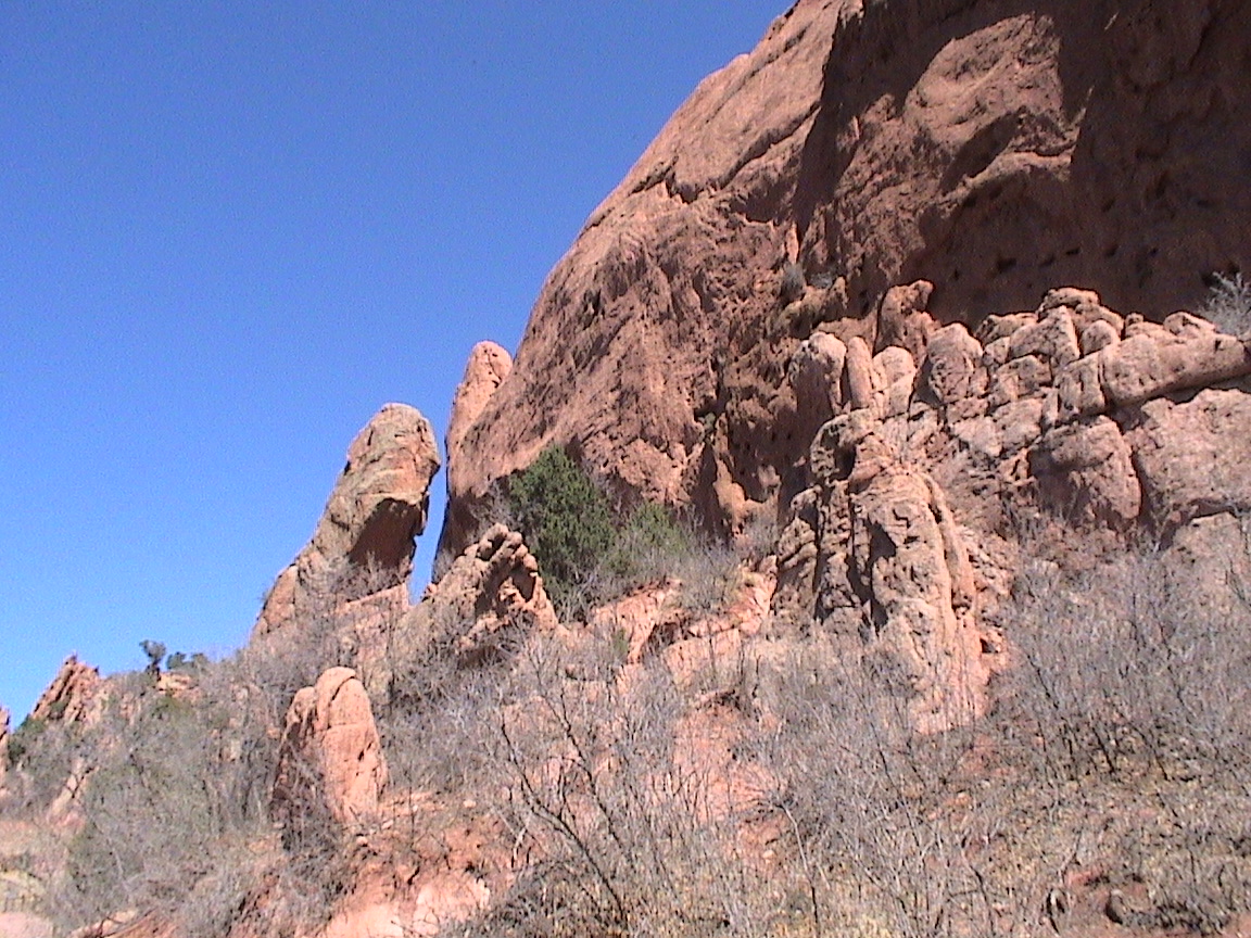 Take a walk with me through the Garden of the Gods! You can click on any of them to enlarge them. There were numerous signs forbidding climbing and disturbing the surroundings, but there were also a few places where you could climb - if you brought the proper gear and had permission. You'll get some idea of what it was like, but the camera just doesn't capture the rich colour. The vertical alignment of the layers and the erosion of the softer material between them made for some striking looks. What I found quite interesting was that all the surrounding rocks were light gray and that really set this "Garden" apart.
